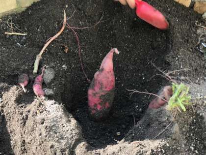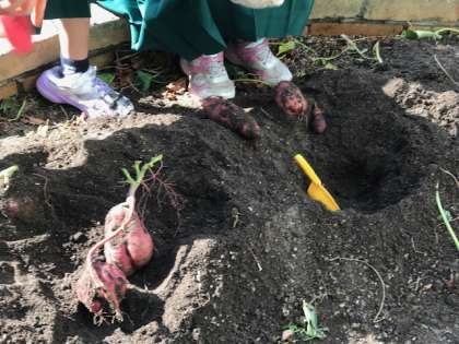 なかよし会で学習園の芋ほりをしました。立派に成長した芋がたくさん出てきました。