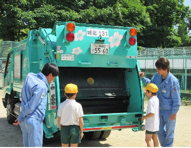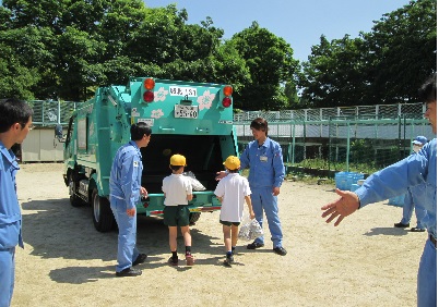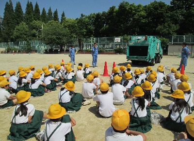 2時間目は運動場で実物のパッカー車を見せてもらいました。