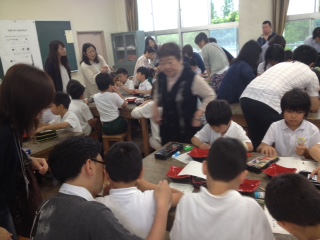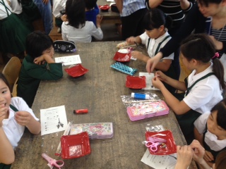 3年生は図工室で地域の方から「フラワービーズのストラップ」づくりを教えていただきました。安全ピンを土台にしてビーズを入れていきます。最後にペンチで端をひねります。仕上げは地域の方やおうちの人に手伝ってもらいました。そして、残りの時間に感想をカードに書きました。