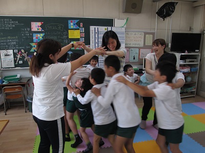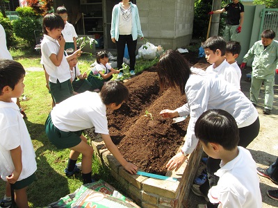 ロンドン橋をして、さつまいもの苗を植えました。楽しかったね。