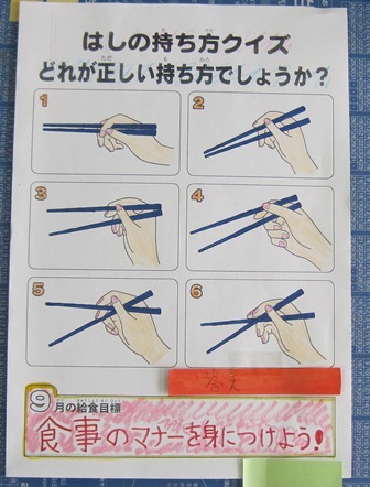 ところで今月の給食指導の月目標は「食事のマナーを身につけよう」です。