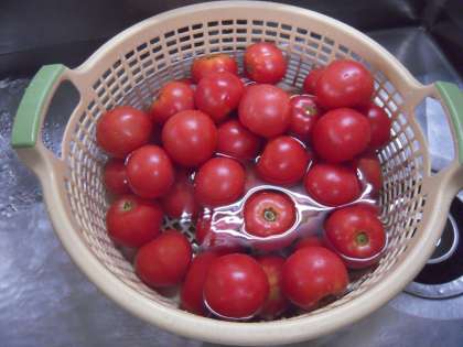 ※写真は今日の給食に使われたトマトです。今日は6年生が文楽鑑賞でいなかったので、1〜5年生の分のトマトです。