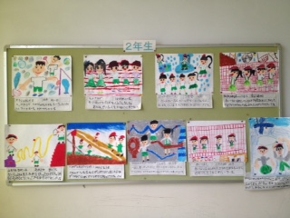 各学年の掲示板は、子ども達の作品が掲示してあります。定期的に変わりますので、ご覧ください