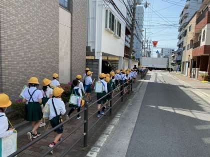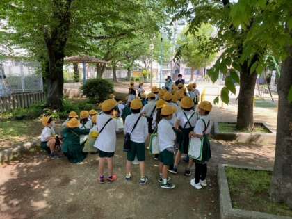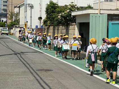 みんなでゆっくり歩いて学習しました。いったことのある公園、よく通る場所でも知らないこともいっぱい。