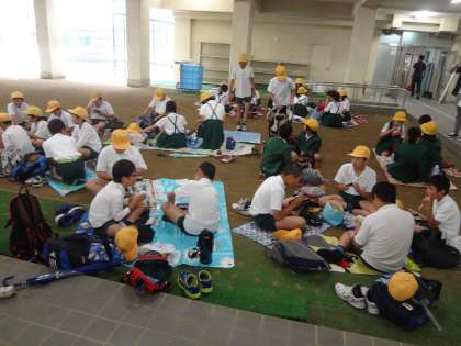 雨だったため、文楽劇場の近くの学校でお弁当を食べさせてもらって帰ってきました。