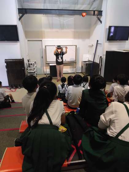 真ん中のテープだけ「ゆれろ、ゆれろ!」と念じています!三つのふりこがあるのに一つだけゆれる、、不思議だなー!
