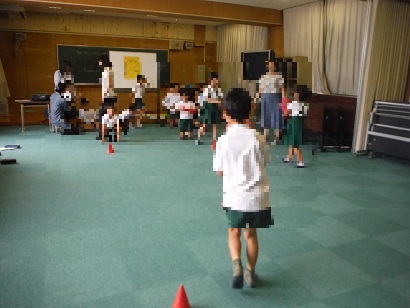 前半はみんなでゲームをしました。じゃんけん列車、ミニコーンを使ってボール運びリレーなどしました。