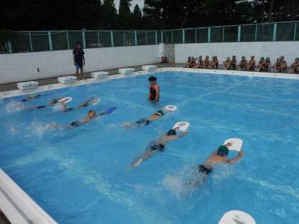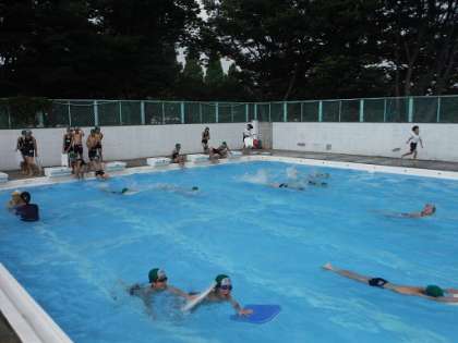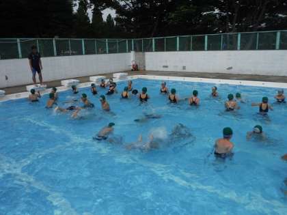 水中じゃんけんでは、負けた人が勝った人の股をくぐります。