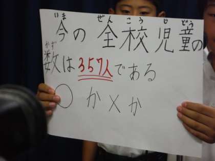 第3問は、みどり小学校の児童数の問題。正解は「×」で