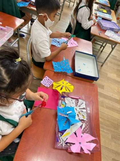 折り紙をはさみを使って切ってみると不思議な形があらわれました。すごくキレイ。