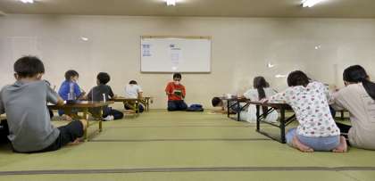 室長が集まり、一日の反省会を行っています。このあと、健康観察をしておやすみなさい。