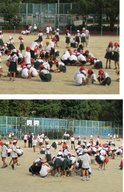 今日の児童集会は石拾いとラジオ体操の練習でした。