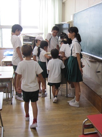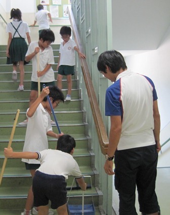 清掃が終わった後、反省会をして、そのあと次回からの分担場所を確認していました。