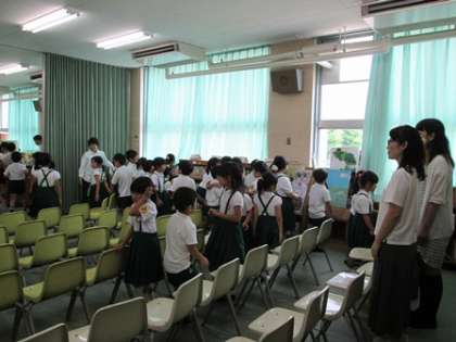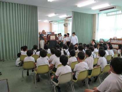 今日のお話の会では、5年の情報委員会の人達が「たなばたまつり」の紙芝居を読んでくれました。たくさんの人が集まりました。季節にあったおはなしでした。