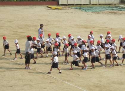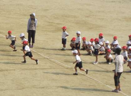 そのあと、1組ずつゴールに立っている先生を目標にかけっこの練習をしました。