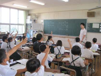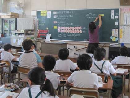 3年生の学習風景です。算数の「10000より大きい数」の学習で10倍した数と10で割った数などのところを学習していました。