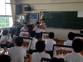 フルートやバイオリンの実物も見せてもらい、ふれることができました。