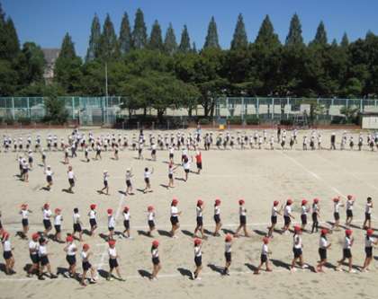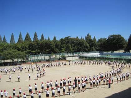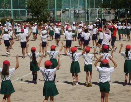 2時間目と3時間目の間の15分休みに全校で鶴見音頭の練習をしました。