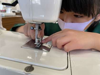 ミシンの上糸かけ、みんな上手くなりました。針に糸を通すときは真剣です。