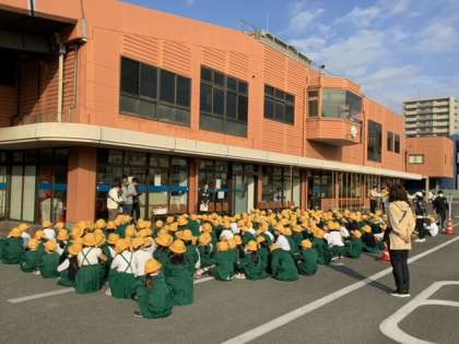 関目教習所で交通安全指導を行いました。リアルな道路や車、信号機などで体感しながら学ぶまなぶことができました。