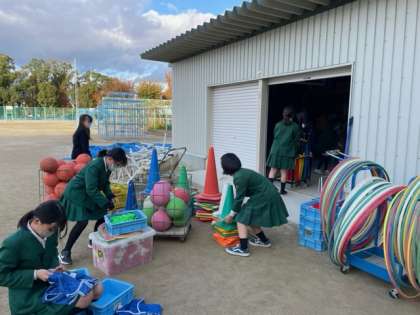 運動委員会は、体育倉庫の片付けとビデオ撮りをしていました。