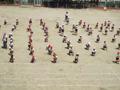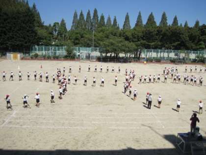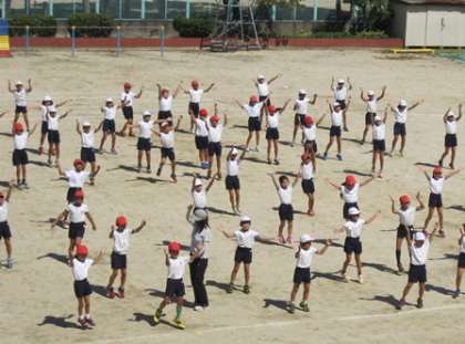 3、4年生がダンスの練習をしていました。テンポの速い曲に合わせて手足をいっぱいに伸ばしておどっています。