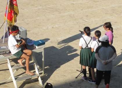 放課後、児童会の人たちが、開会式の司会練習などをしていました。