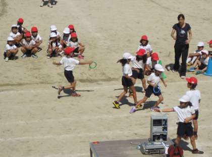 はじめてのリレー 上手にバトン(リング)を渡すことができるでしょうか。