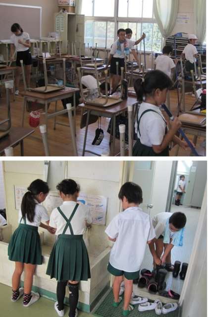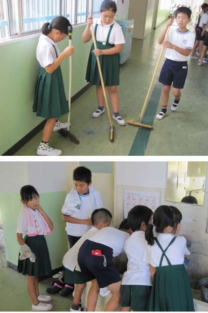先週確認しましたが、新しい場所になったのでちょっと戸惑っている班もありましたが、高学年のリーダーさんに、新しい仕事を教えてもらいながらなかよく清掃をしていました。
