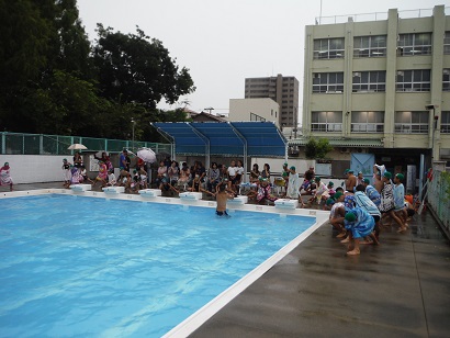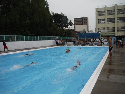今日の2時間目は4年生のプール参観でした。途中から雨が降ってきましたが、クロールの泳力テストをしました。夏休みに一生懸命練習したので、25mを泳ぎ切る児童がたくさんいました。