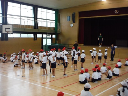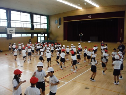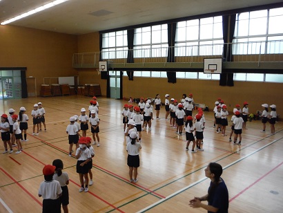 プール学習が終わり、今週から10月4日の運動会に向けて練習を始めています。2年生は3時間目に講堂でダンスの練習をしました。