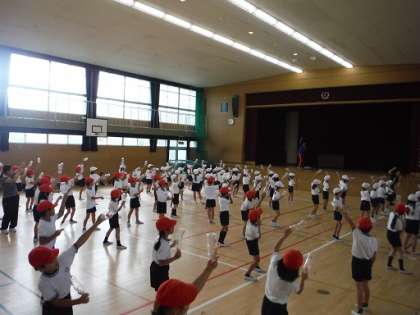 今日は1時間目に講堂、2時間目に運動場でダンスの練習をしました。