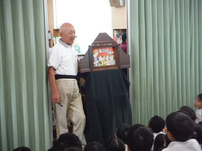 今日も図書ボランティアの方に来ていただいて、20分休みに「お話の会」を行いました。今日のお話は「おじさんの手紙」、電車内のマナーがよかったクラスに同じ電車に乗り合わせていたおじさんから手紙が届くというお話でした。今回も立ち見が出るほど満員御礼。