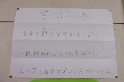 ベテランの守野先生からアドバイスをいただき、3年生では早くできて時間があまった時や、自習をしたい時に、プリントを自分でとって行うようにしています。