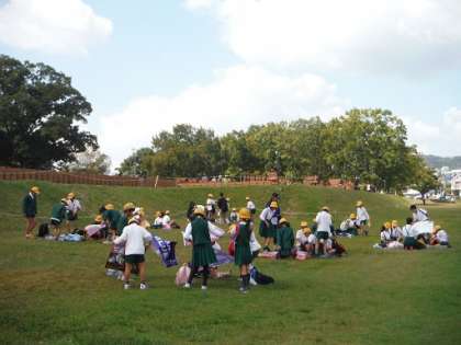 その後、今城塚古墳を見学し、埴輪祭祀場のそばで、古代のロマンを感じながらお弁当を食べました。