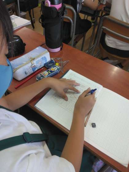 学習参観、図形の特徴を調べています。コンパスを上手に操作しています。