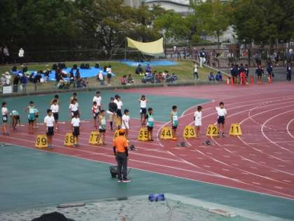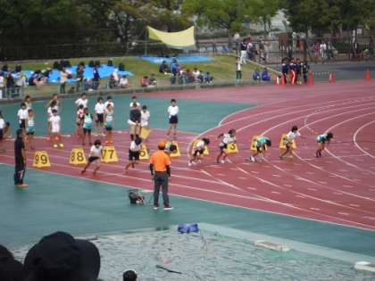 5年男子が100m決勝に、5年女子が100m決勝に進出しました。少し肌寒い天気の中、みんな全力で走ってきました。