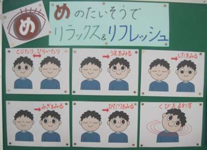 今月の保健室の掲示板は「目」についてです。(ほけんだよりも目についてです。)