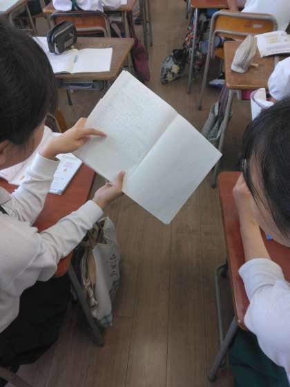 考えたことを交流しています。人に話すことで、理解はより深まりますね。