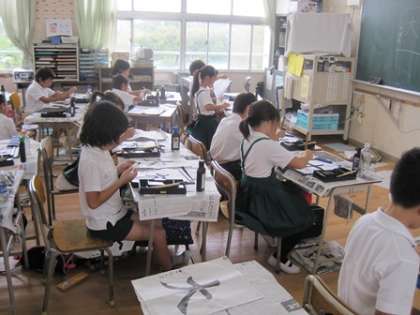 3年生は、1学期から書写で毛筆の学習を始めました。