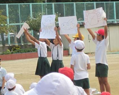 集会委員が見せる4枚の絵のうち1枚が1回目と2回目では違います。その絵が何であるか答えるゲームです。