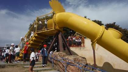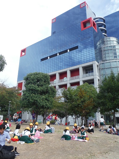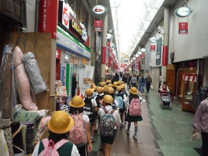 日本一長い天神橋筋商店街を通り、関西テレビ横の扇町公園でお弁当を食べました。扇町公園では、大きなすべり台等でみんなで楽しく遊んで学校に帰ってきました。
