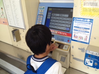 2年生は、河内磐船の野田農園にいもほりに行きました。JRの駅では一人一人が券売機で切符を買いました。緊張しながらお金を入れました。