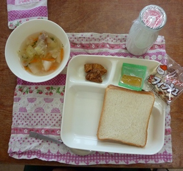 アーモンドフィッシュ  パン  牛乳  663Kcal