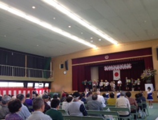 ここ数年残暑が厳しいということで、本日、緑地域の「敬老祝賀会」が本校の講堂で実施されました。