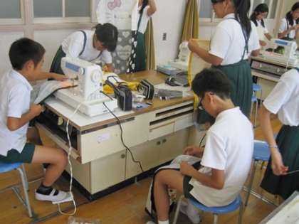 6年2組のみんながエプロンを製作していました。