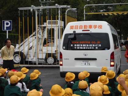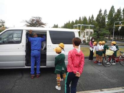 今日は中学年の交通安全指導です。今回も関目自動車学校のみなさんにお世話になりました。