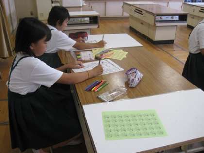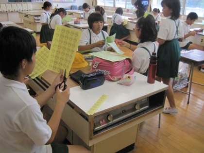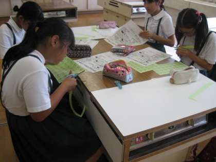 今回の担当委員会は給食委員会です。今日の委員会活動で給食委員会の人は、毎月教室に掲示している給食目標のプリントの作成と合わせてあいさつ週間の準備もしていました。