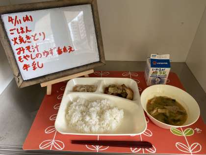 焼きとりもみそ汁もごはんがすすむ献立でした。