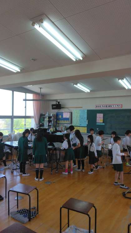 音楽室での学習が始まりました。いろんな楽器があってみんなワクワクしています!